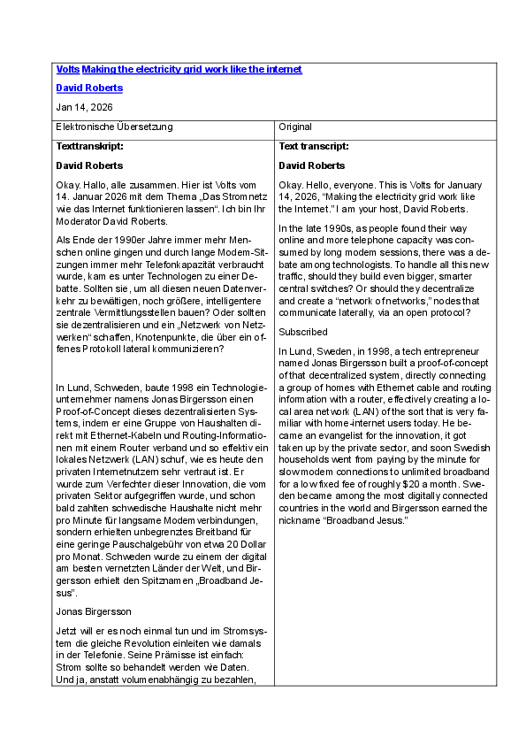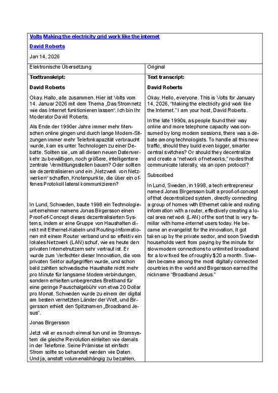 Ich habe das Transkript des «Volts»-Blogs «Making the electricity grid work like the internet» auf Deutsch übersetzt (Link).